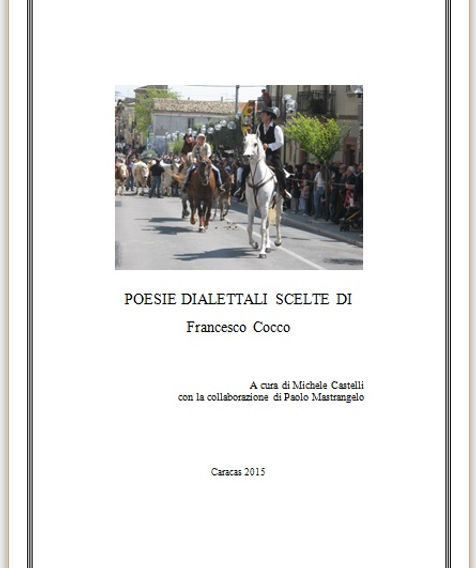 Francesco Cocco è l’ultimo di questa stirpe. Sia in termini cronologici, sia per l’inevitabile, naturale estinzione che a breve toccherà al nostro dialetto, e non solo. I dialetti, infatti, come tutti i fenomeni legati all’evoluzione dell’uomo, cominciano ad entrare in uno stato agonico, vittime della lingua nazionale favorita dalle scuole massificate e dai media sempre più presenti nelle quotidiani necessità dell’uomo. E nel Cocco è evidente la transizione che comincia a lasciarsi alle spalle. Non solo per la presenza nei suoi testi di voci moderne impossibili da riscontrare nella lingua dei nonni, come reggióne, automòbbele, autobbusse, telefonine, rundenèlle, aprile, femmeneletà, ecc., che danno la sensazione di essere lessico dialettale solo per la loro rappresentazione fonetica (doppia “g” palatale, doppia “b” in posizione iniziale seguita da vocale o intervocalica, la shwa in sostituzione di alcune vocali atone, ecc.) ma anche, tra l’altro, per la non piú sempre ricorrente sonorizzazione della consonante dopo la nasale nei nessi italiani “nt”, “nc” (“c” palatale), o “mp” come cuntratte, sencère, Campemarine, ecc. Oppure la preservazone del nesso italiano “nv” invece del dialettale “mm” come nvetanne (anziché mmetanne), o di “nf” al posto di “mb” come nfèste, cunfessióne, ecc. (anziché mbèste, cumbessióne, ecc.).